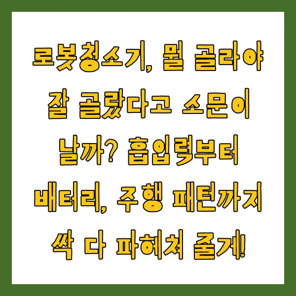로봇청소기, 뭘 골라야 잘 골랐다고 소문이 날까? 흡입력부터 배터리, 주행 패턴까지 싹 다 파헤쳐 줄게!