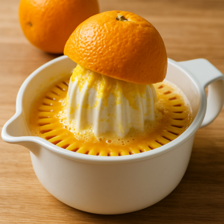 컵형은 위에 누르면 즙이 밑으로 흐르는데, 그릇이나 컵을 아래에 두면 바로 활용할 수 있어요. 힘 조절은 천천히, 과일 크기에 맞게 조절하면 좋아요.