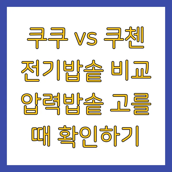 - 안전: 압력밥솥은 안전과 직결되는 제품이므로 안전 기능 또한 꼼꼼하게 확인해야 합니다. 쿠쿠와 쿠첸 모두 다양한 안전장치를 탑재하여 안심하고 사용할 수 있도록 설계되었습니다.