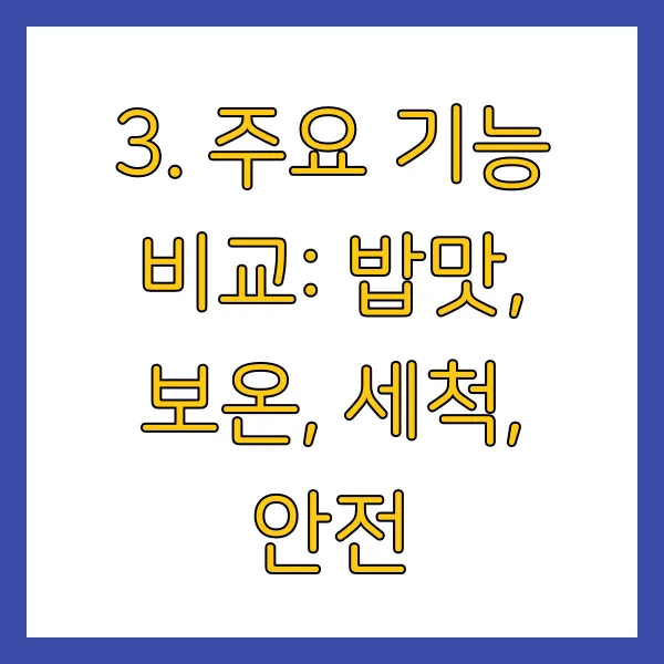 3. 주요 기능 비교: 밥맛, 보온, 세척, 안전